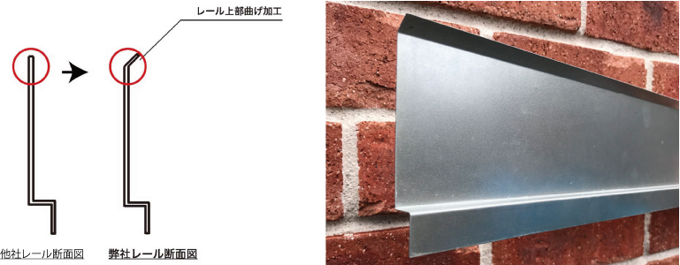 精巧に設計製造されたシステムレールが、隙間無く壁全体の防水シールとなって雨水を確実にシャットアウトします。